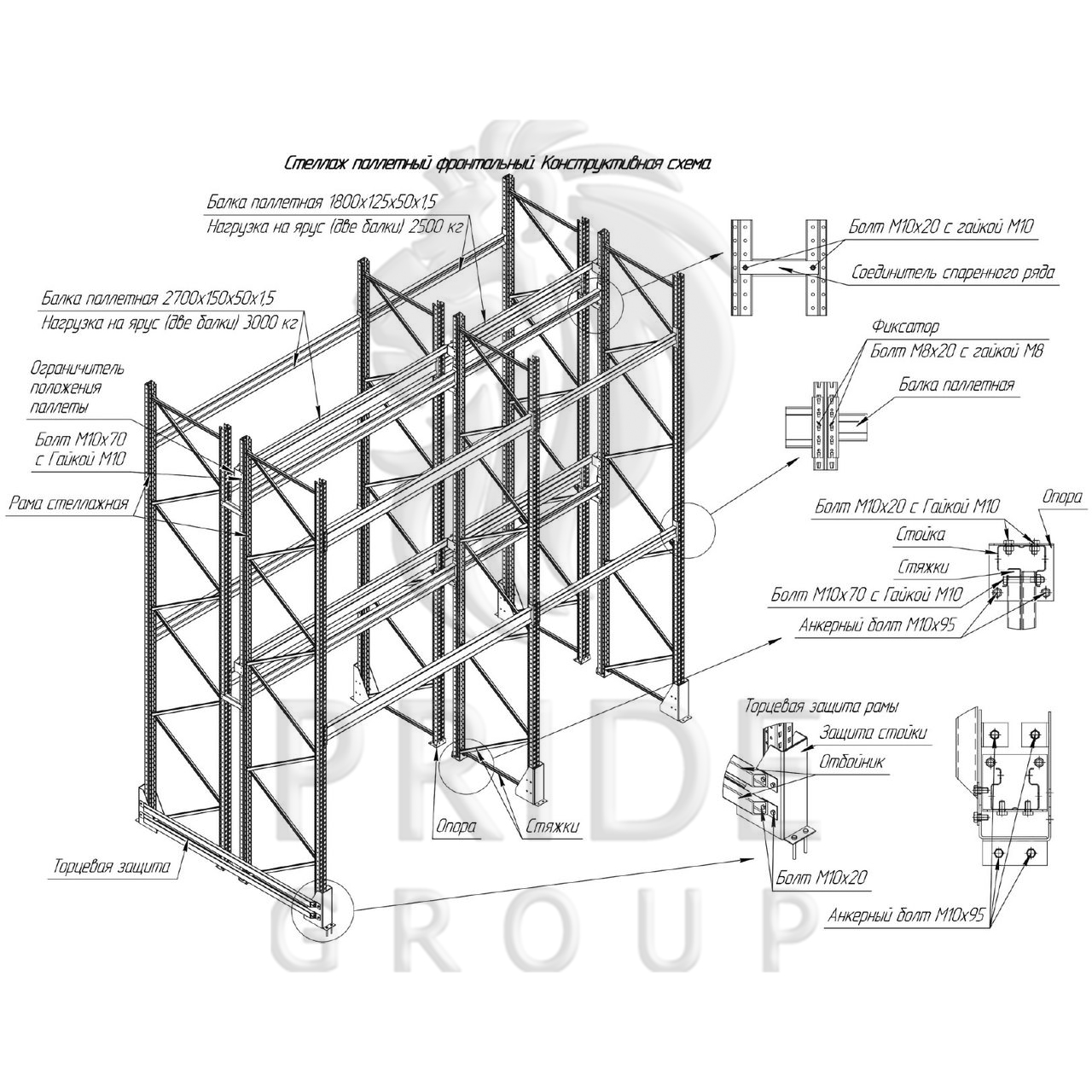 Нагрузка на раму при высоте 1 яруса 1 метр от пола до 12 тонн